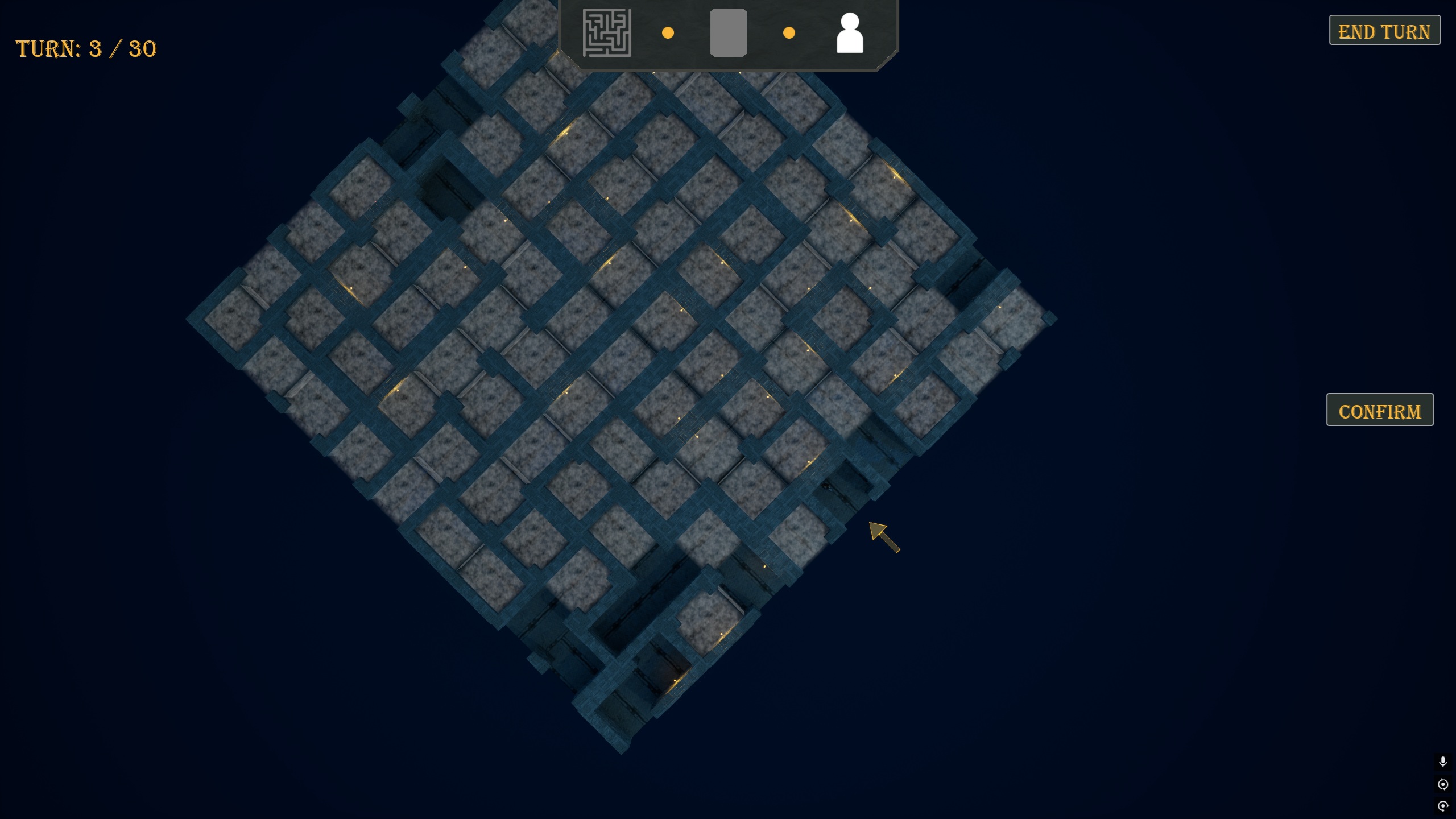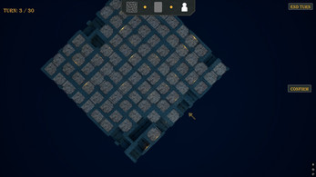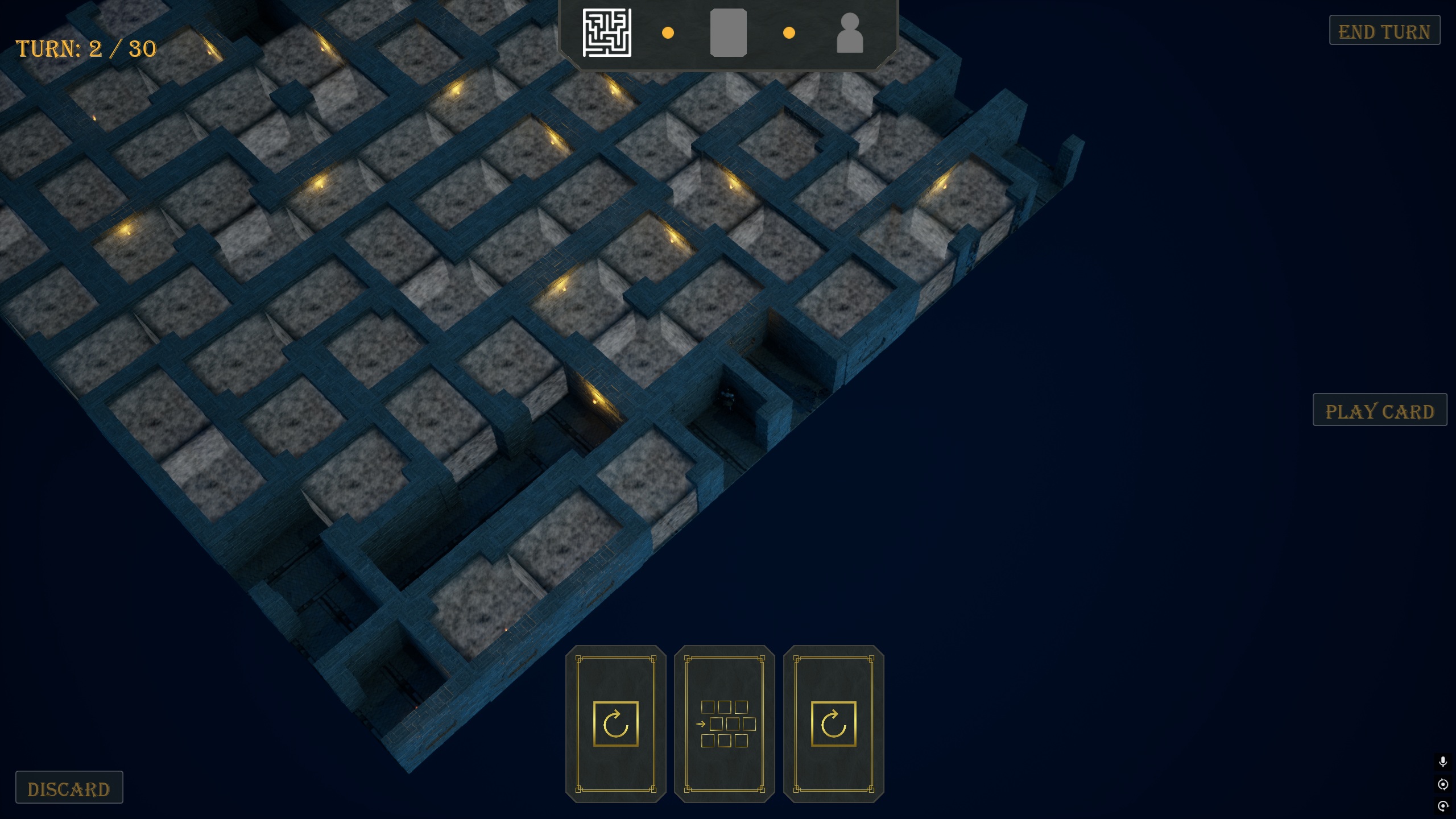 Unseen Labyrinth is a strategic single-player 3D card-based maze navigation game that combines tactical movement with resource management. Players use cards to navigate through dynamically changing mazes while managing limited resources and adapting to evolving challenges. The game features an angled perspective within the grid-based environment.